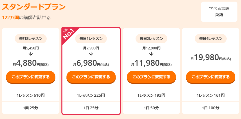 月額制で毎日レッスンを受けられるプランがあり、1回あたりのレッスン料が非常にリーズナブルです。自宅にいながら本格的な英語学習ができる点は、忙しい方にとって大きなメリットです。