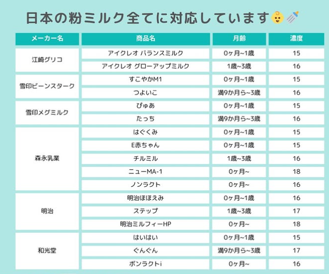 日本の全ての粉ミルクに加え、海外の粉ミルクも利用ができます。
